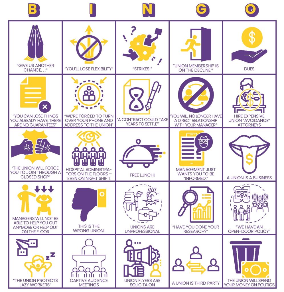 Unfortunately, these tactics are common among many employers – so common and predictable that BINGO cards have been created by countless others going through the process of forming a union. Follow along to see just how many tricks our bosses will attempt.